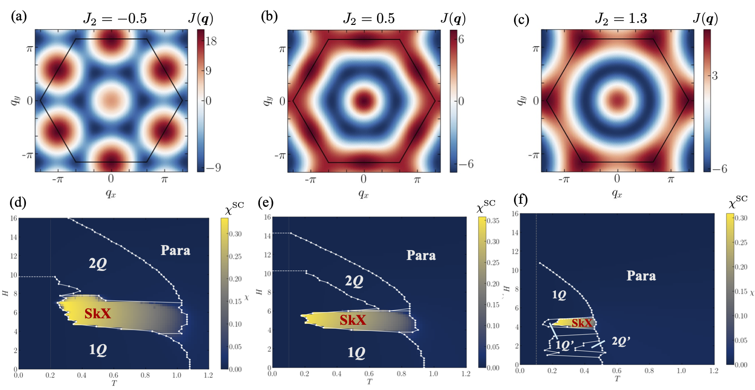 その結果、スキルミオン結晶の有限温度での安定化には、波数空間における6回回転対称性に由来する異方性および強磁性チャンネルに相当する相互作用が重要な役割を果たすことを明らかにしました。